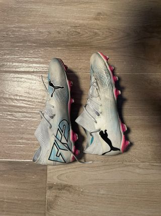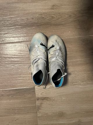 Botas de fútbol Puma Future 7 Match. tienen una linea negra de una pisada q me dieron y tal vez se quita con dedicacion pero cuesta - Modelo FG/AG. - Diseño en blanco y azul. Marca: Puma • Modelo: Future 7 Match FG/AG • Para césped natural (FG) y artificial (AG) • Muy cómodas y ligeras • Buen agarre y estabilidad • Ajuste tipo calcetín que sujeta bien el pie • Ideales para entrenamientos y partidos 📍 Entrega en mano / envío a consultar