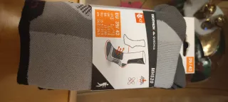 Calcetines deportivos Quechua modelo MH520. - Talla EU 39/42. - Color gris y negro. - Diseñados para actividades deportivas.