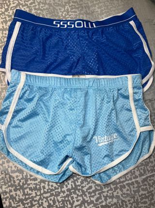 Conjunto de dos calzoncillos o shorts deportivos de malla. - Color azul. - Talla XL.