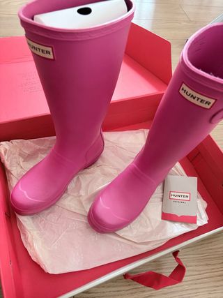 Botas de agua altas de la marca Hunter en color rosa. - Diseño clásico. - Suela de goma. - Acabado mate. - Originales - Regalo calcetines gorditos blancos y negros - Tiene un pequeño roce en la parte de dentro