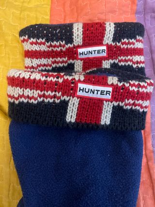 Calcetines de punto grueso / forro polar para botas Hunter. Originales - Diseño de punto trenzado. - Parche con logo de Hunter. Vendo por falta de uso