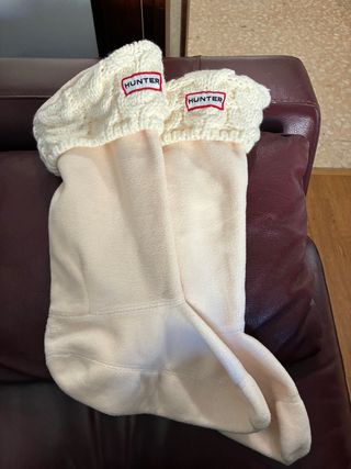 Calcetines para botas Hunter, talla L. Comprados en El Corte Inglés. - Color beige y blanco. - Diseñados para botas altas originales.