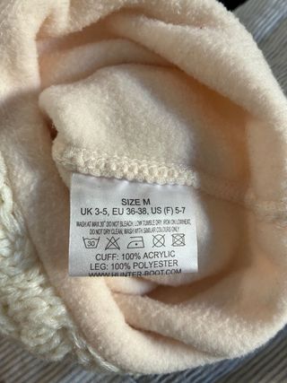 Calcetines termicos de lana acrilica con diseño trenzado. Talla: 36/38. La ultima foto es para que se vea como quedfan puestos en las botas. Si estais interesadas tambien en las botas preguntar precio - Parte superior de punto trenzado. - Detalle de etiqueta con logo.