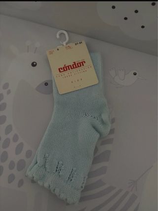 Calcetines de punto para niños con un bonito diseño. - Detalle de puntilla en la parte superior. - Diseño de flor en relieve en la caña. Si necesitas más información o mas fotos, no dudes en contactar