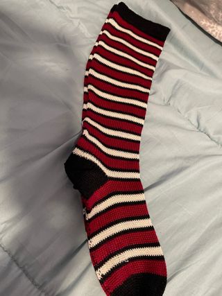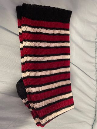 Calcetines de rayas para niño, ideales para fiestas falleras. - Diseño a rayas rojas, blancas y negras. - Tejido de punto cómodo. -Talla hasta la 32