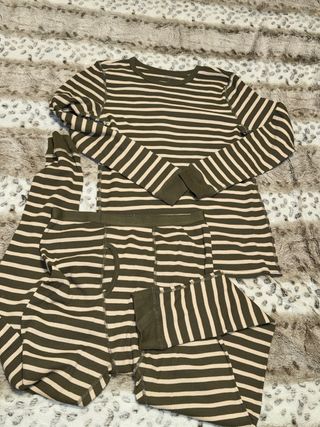 Conjunto de ropa interior térmica para niños con un diseño a rayas. - Mangas largas. - Pantalón largo. - Tejido de punto gofrado.