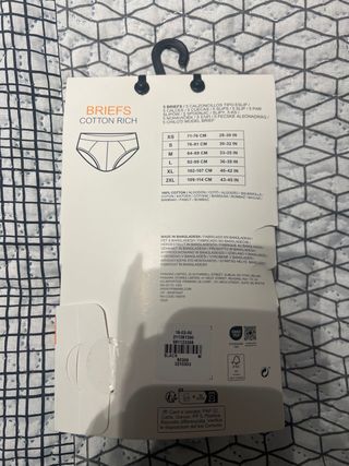 🩲 Pack 5 Calzoncillos (Briefs) Primark - ¡NUEVOS CON ETIQUETA! Vendo pack de 5 slips de hombre TOTALMENTE NUEVOS A ESTRENAR, en su embalaje original. ✅ Características: Marca: Primark (Producto original). Estado: Nuevos a estrenar, con etiqueta. Talla: S (Corresponde a 76-81 cm de cintura, según la tabla). Composición: Alto contenido en algodón ("Cotton Rich" y Algodón sostenible). - Diseño tendencia con rayas blancas sobre fondo negro y gris jaspeado, cintura elástica. - Etiqueta de Primark Cares que indica compromiso con la naturaleza y sostenibilidad.