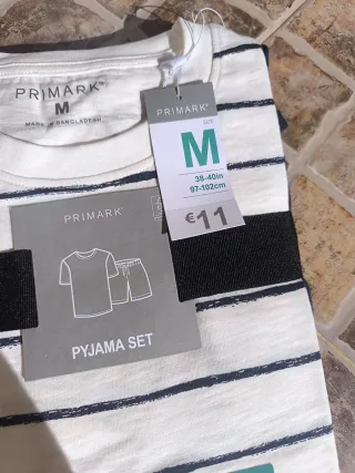 Conjunto de pijama de Primark con un diseño de rayas clásico. - Camiseta de manga corta. - Pantalón corto. - Tejido suave y cómodo. 100% algodón. - El pantalón lleva bolsillos. - Nuevo a estrenar, conserva embalaje y etiqueta.