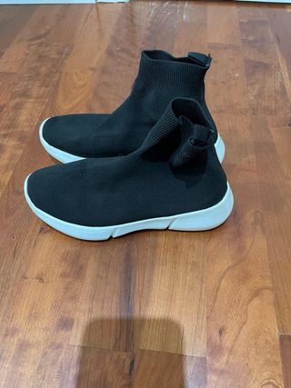 Playeros tipo calcetín con suela blanca. - Diseño moderno y cómodo. - Parte superior de tejido elástico. - Suela de goma antideslizante.