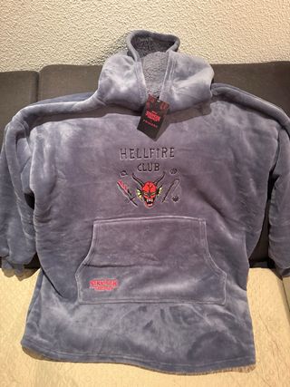 NO ENVÍO POR CORREOS Snuddie súper suave del Hellfire Club de Stranger Things. - Diseño con estampado del Hellfire Club. - Bolsillo frontal grande. - Capucha forrada.