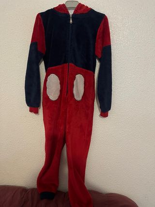 Mono de pijama para chico, talla 12. Ideal para estar cómodo en casa. - Diseño inspirado en Mickey Mouse. - Cierre de cremallera frontal. - Capucha integrada. - Puños y tobillos elásticos.