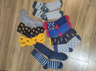 Lote de 12 pares de calcetines divertidos a estrenar. Todos son talla única, menos los que tienen la etiqueta blanca, que la talla corresponde del 35-40