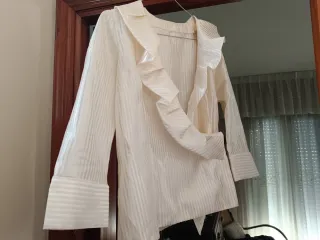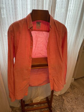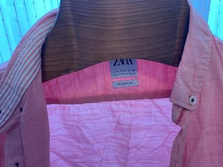 Camisa de manga larga de la marca Zara, con un diseño moderno y juvenil. - Corte relajado. - Detalle puños y cuello en rayas - Manga se puede recoger con botón