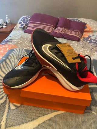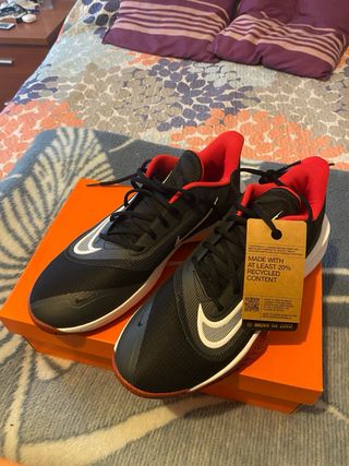 Zapatillas Nike Precision 7 en color negro con detalles en rojo. Con etiquetas y caja, la vendo porque me quedan pequeñas. - Diseño moderno y deportivo. - Suela con buen agarre. - Cierre con cordones.