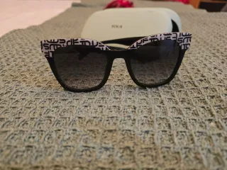 Gafas de sol con un diseño moderno y llamativo. - Montura en color negro con detalles blancos. - Estilo cat eye.