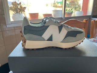 Zapatillas New Balance 327 en tonos beige y verde. Diseño moderno y cómodo. - Parte superior de ante y malla. - Cierre de cordones. - Suela de goma. - Logo de la marca en la lengüeta.