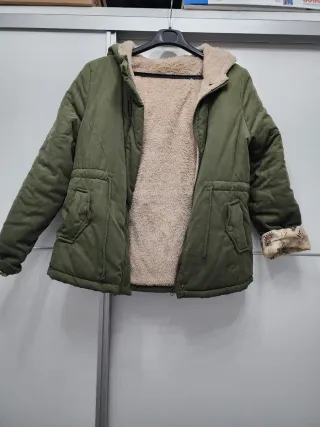Parka de color verde con forro interior. - Diseño con capucha. - Bolsillos frontales. - Puños con estampado floral.