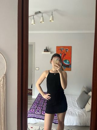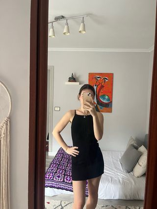 Vestido corto de tirantes de Zara. - Diseño ajustado. - Escote cuadrado. - Largo mini.