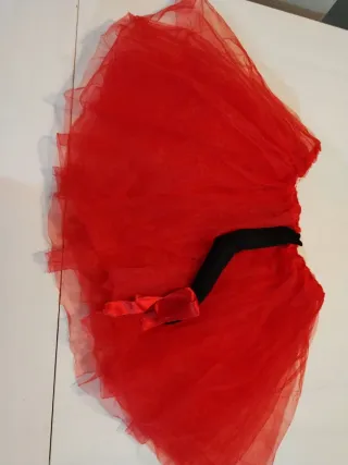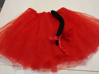 Disfraz de adulto con un tutú rojo y cola negra. - Tutú de tul con goma elastica - Cola negra con lazo rojo.