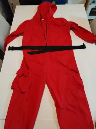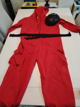 JUEGO DEL CALAMAR Disfraz completo para adulto o niño ideal para fiestas o eventos. TALA S DEL CUELLO A LA PIERNA 130 CM - Mono rojo con capucha. - Cinturón negro. - Casco negro.