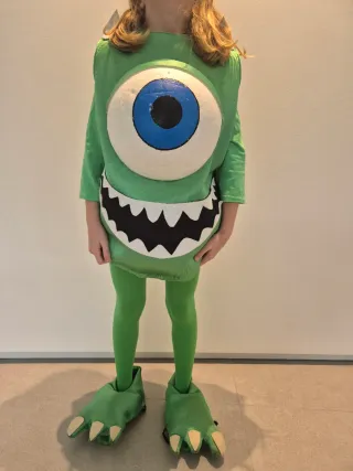Disfraz hecho en casa, ojo con relieve y se incluye camiseta y pantis verdes, talla 5/6 años, está usado y solo necesita unos retoques pequeños.