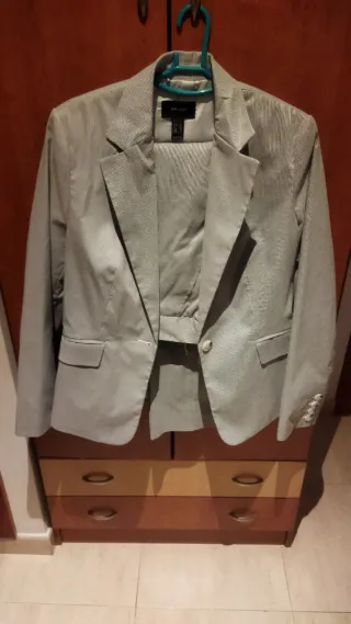 Conjunto de traje para mujer, compuesto por chaqueta y pantalón. - Diseño a rayas finas. - Chaqueta con un botón. - Puño de la manga con botones.