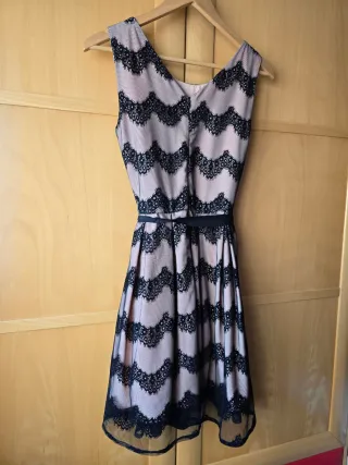 Vestido de la marca Darling con un diseño elegante. - Encaje negro sobre fondo rosa. - Cinturón de lazo negro. - Largo hasta la rodilla. Esta marcado talla M,pero esta modificado de modista para talla XS-S
