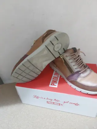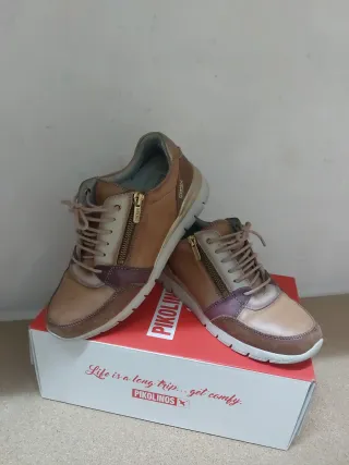 Zapatos Pikolinos de cuero en tonos marrones y detalles multicolor. Cuentan con cierre de cremallera y cordones. - Diseño moderno y cómodo. - Materiales de calidad.