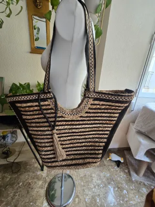 Bolso de playa de yute con rayas