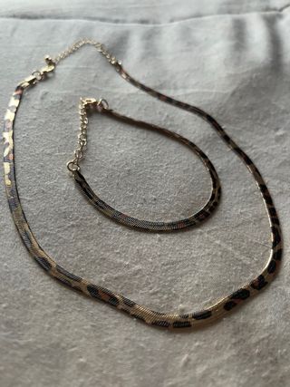 Conjunto de collar y pulsera con un diseño llamativo. - Diseño tipo serpiente. - Estampado de leopardo. - Cadena ajustable.