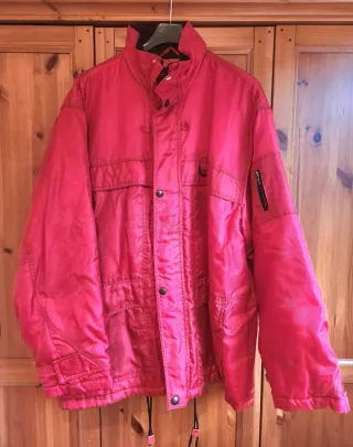 Anorak de color rojo, ideal para protegerse del frío. - Cierre de cremallera. - Bolsillos con cremallera en la manga. - Cordones ajustables en la cintura.