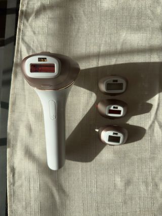 Depiladora Philips Lumea en color dorado y blanco. Incluye varios cabezales para diferentes zonas. - Cabezal para rostro. - Cabezal para axilas. - Cabezal para zonas íntimas. Con muy poco uso.