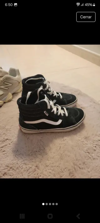 Zapatillas altas de la marca Vans en color negro. - Diseño clásico con la franja lateral característica. - Cierre con cordones blancos. - Suela de goma.