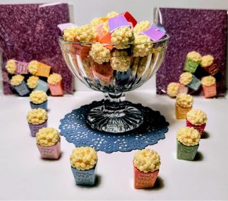 Conjunto de abalorios acrílicos galvanizados con forma de palomitas de maíz. - Diseño divertido y colorido. - Ideales para manualidades y bisutería. 28x19mm, 2mm haz. 5 unidades pack