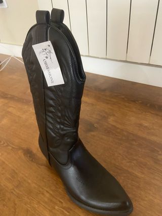 Botas estilo western de la marca OBSESSIONE. - Color negro. - Diseño con detalles bordados en la caña. - Caña alta.
