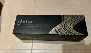 Cepillo profesional GHD Glide en acabado negro y dorado. Diseñado para alisar y suavizar el cabello de forma rápida y eficaz. - Diseño elegante en negro y dorado. - Ideal para un acabado profesional en casa. Usado 3 veces