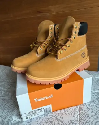 Botas Timberland de hombre en talla 43. Un clásico para cualquier ocasión. - Color marrón con detalles en naranja. - Diseño robusto y duradero.
