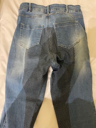 Se venden pantalones de equitación marca CWD, originales, en talla 40. Confeccionados en tejido elástico de alta calidad, que garantiza comodidad, ajuste y libertad de movimiento durante la monta. Características: Diseño con estampado efecto tejano Full grip para una óptima adherencia a la silla Tejido técnico, resistente y confortable Corte anatómico, adecuado para uso regular Estado general muy bueno, tal y como se aprecia en las imágenes. Para más información o fotografías adicionales, no dude en contactar.