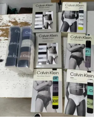 Pack calzoncillos de la marca Calvin Klein. De tienda autorizada abierta rebajados packs de tres boxes o tres slips Calvin Klein de nueva colección consultar tallas y colores un pack 35 euros dos pack 65 - Diseños variados y coloridos. - Tejido suave y cómodo.