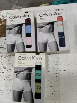 De tienda autorizada abierta rebajados packs de tres boxes o tres slips Calvin Klein de nueva colección consultar tallas y colores un pack 35 euros dos pack 65 totalmente nuevos precintados y sin manipular