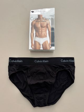 Pack de 3 calzoncillos slips en talla M de la marca Calvin Klein, de color negro. Nuevos.
