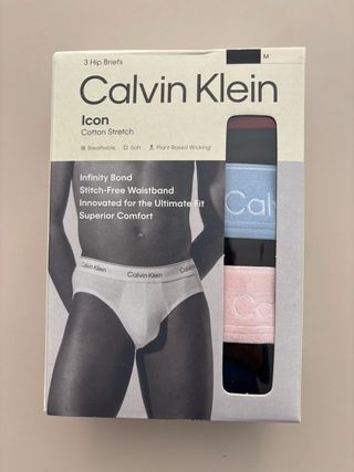 Pack de tres calzoncillos Calvin Klein. - Modelo Cotton Stretch. - Corte clásico. - Talla M. Los compre talla L y me vinieron talla M. Ni se han probado.