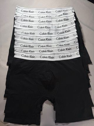 Lote de boxers de Calvin Klein y Hugo Boss. - Pack de 3 unidades de Calvin Klein. - Pack de 3 unidades de Hugo Boss. - Material: Algodón elástico. Solo un pack 20€ si te llevas los dos 30€. Comprados el día 1 de diciembre de 2025 talla S por error, los vendemos sin estrenar.