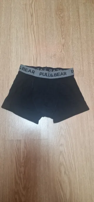 Pack de tres calzoncillos de la marca Pull&Bear, sin usar y de buena calidad. El color es negro y la talla es M. - Cintura elástica con logo. - Tejido suave y cómodo.