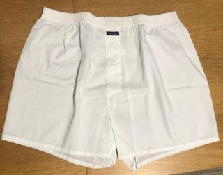 Conjunto de 2 calzoncillos tipo boxer de tela para hombre de la marca GIULIO del corte inglés. - color blanco - Cintura elástica. - Cierre de botón. - Tejido tela no ajustable. Fácil planchado. - Composición: 50% algodón, 50% poliester. - Talla L - 52. - Medidas: 76 cm de cintura, 36 cm largo