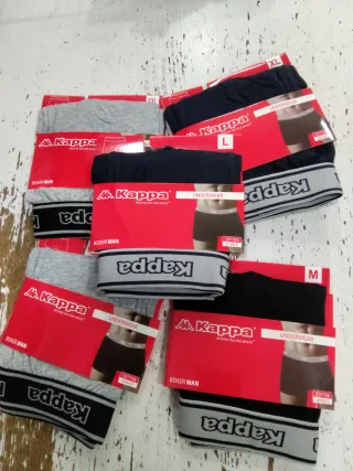 Lote de 3 boxers Kappa para hombre. De tienda autorizada abierta ha rebajados boxers de la marca Kappa originales producto de alta calidad consultar tallas disponible en negro gris y azul marino precio por lote de tres boxers - Talla L - Talla XL - Talla M - Material: Algodón y elastano -talla XXL