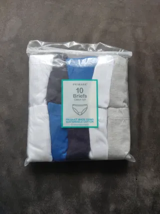 Pack de 10 calzoncillos de Primark tipo slip. - Talla 5-6 años - Colores variados: azul, negro, gris y blanco.