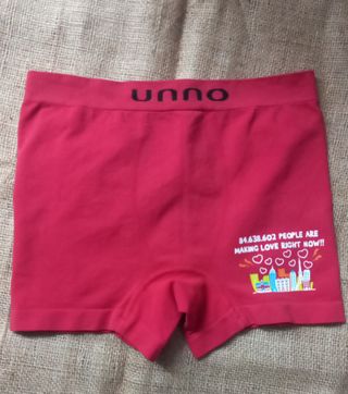 Calzoncillos tipo boxer, marca Unno, color rojo "Making Love" talla disponible M. Última unidad. Liquidación de tienda. Se hacen envíos. Consulta sin compromiso.