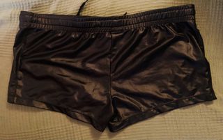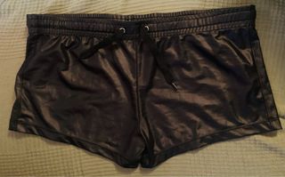 Boxer de estilo fetish en color negro. - Cintura elástica con cordón ajustable. - Tejido brillante y sedoso. - Diseño corto y ajustado.
