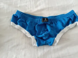 Calzoncillos tipo slip de la marca DOMSK. - Color azul con detalles blancos. - Tejido suave y cómodo.